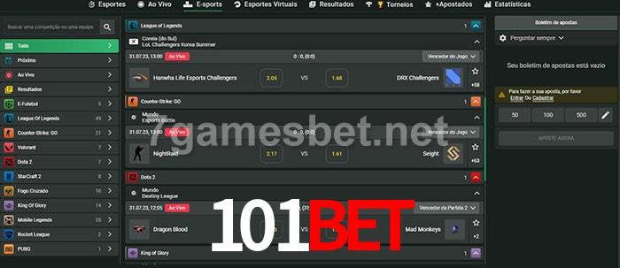 O 101bet oferece uma grande seleção de opções de apostas em e-sports com probabilidades competitivas